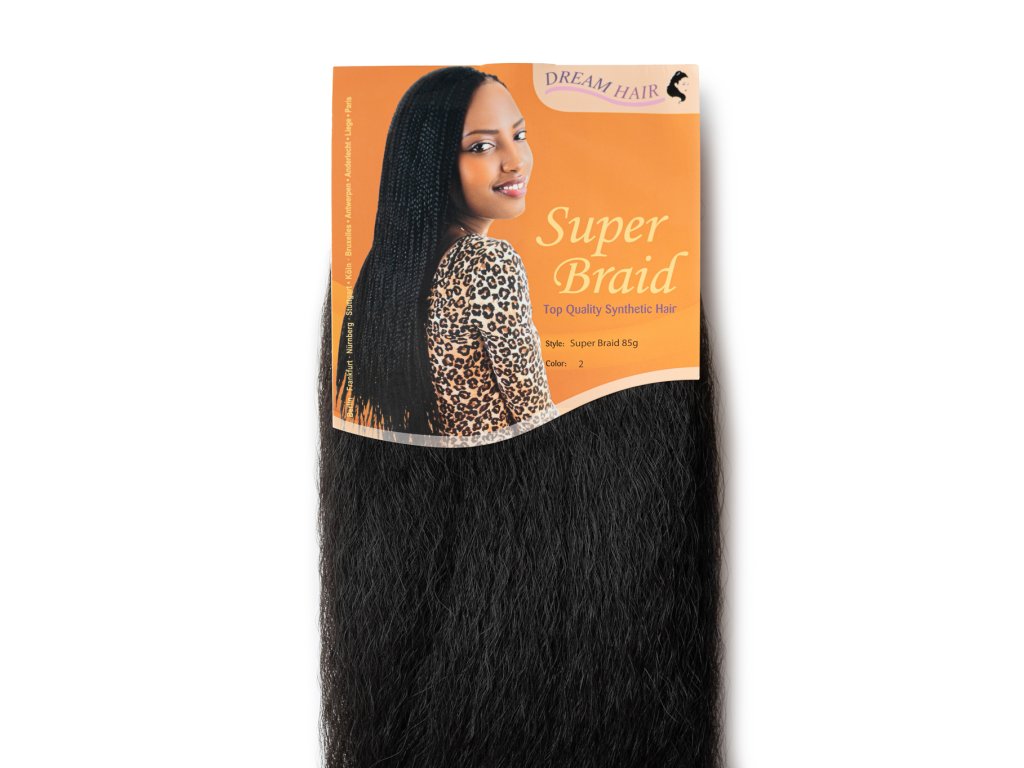 100% Jumbo Braid Kanekalon Super Braid je syntetické vlákno určené především pro pletení vysokých culíků, dredů, rasta copánků, culíků na gumičce a dalších. Tento typ kanekalonu je velmi oblíbený díky své vysoké kvalitě, přirozenému vzhledu a snadné manipulaci. Jeho největší předností je přirozený vzhled, velký objem, odolnost, lehkost, široká paleta barev. Může být tepelně upravován pomocí žehliček na vlasy, fénu, natáček, aniž by došlo k jeho poškození.