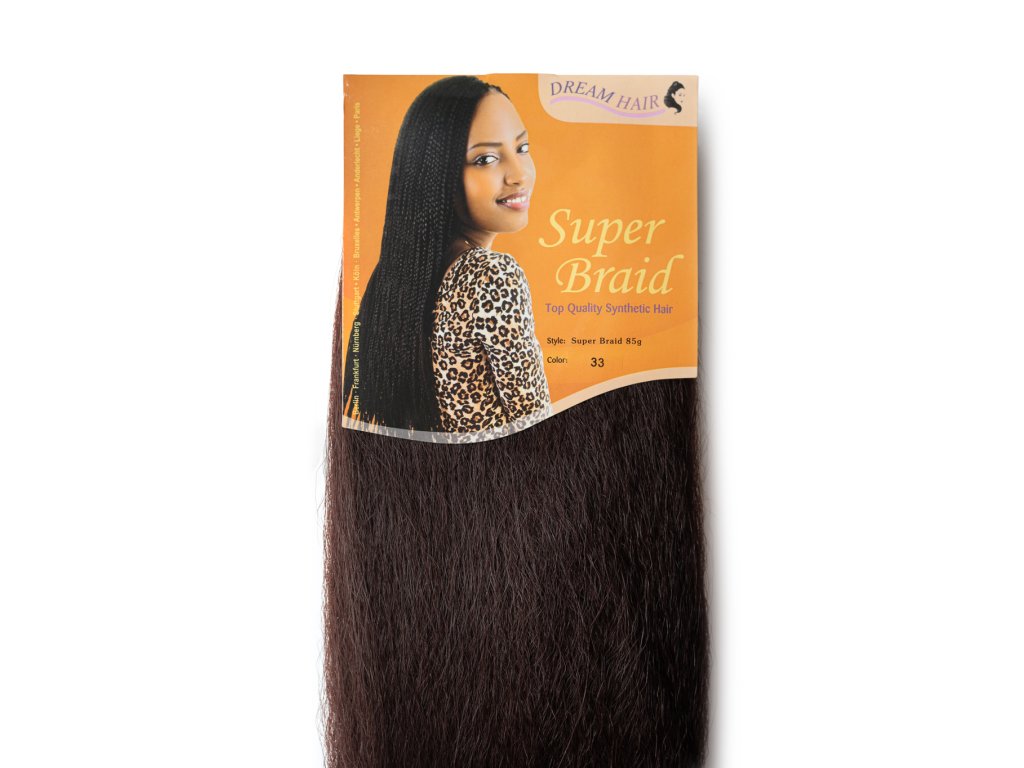 100% Jumbo Braid Kanekalon Super Braid je syntetické vlákno určené především pro pletení vysokých culíků, dredů, rasta copánků, culíků na gumičce a dalších. Tento typ kanekalonu je velmi oblíbený díky své vysoké kvalitě, přirozenému vzhledu a snadné manipulaci. Jeho největší předností je přirozený vzhled, velký objem, odolnost, lehkost, široká paleta barev. Může být tepelně upravován pomocí žehliček na vlasy, fénu, natáček, aniž by došlo k jeho poškození.