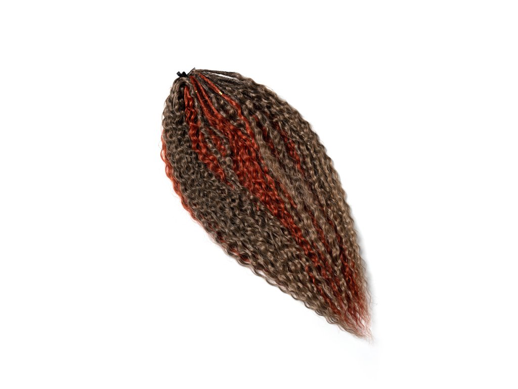 Používá se vysoce kvalitní syntetické vlákno, vlnitý Kanekalon, pro jeho realistický vzhled a vlastnosti podobné lidským vlasům.