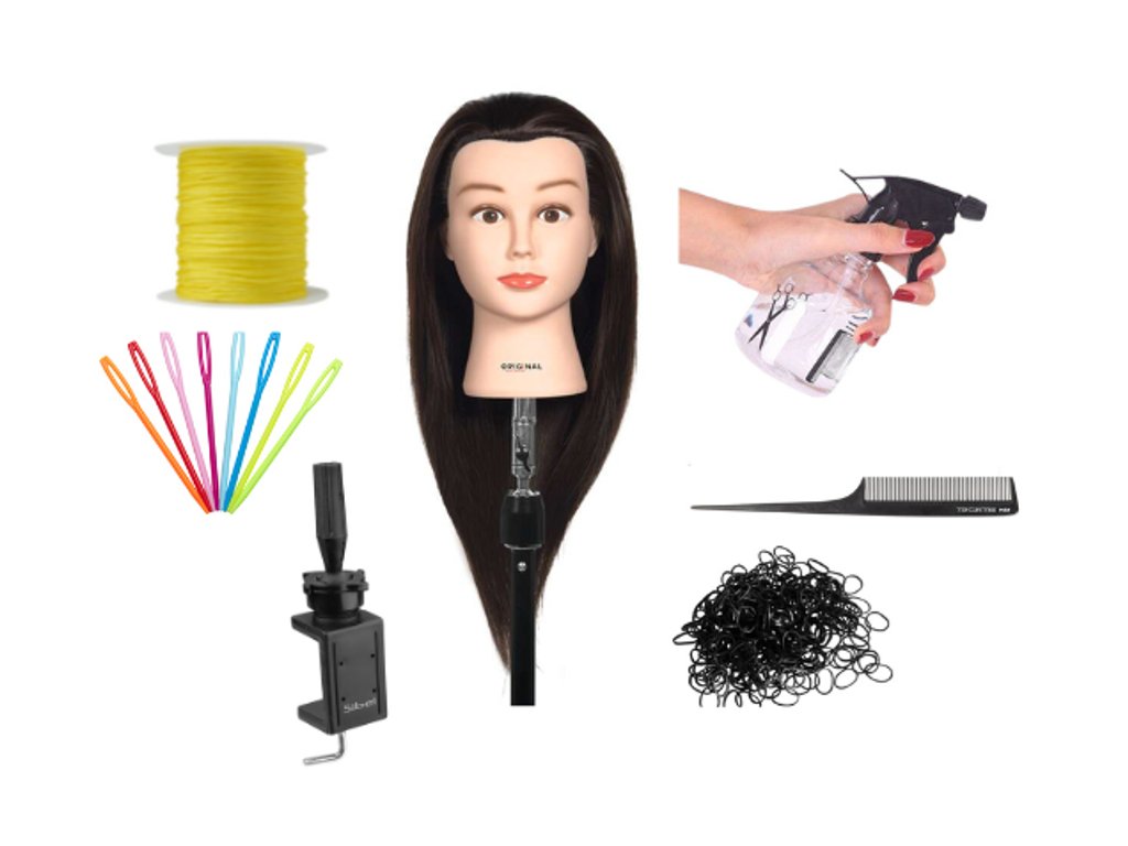 cvičná hlava pro trénink pletení různých technik