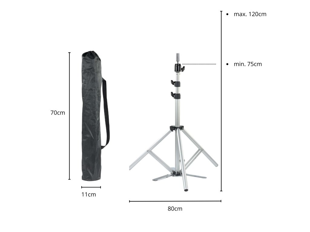 Extra lehký stativ s hliníkovou tyčí váží přibližně o 30 % méně než běžné kovové stativy, takže manipulace s ním je velmi snadná a rychlá.